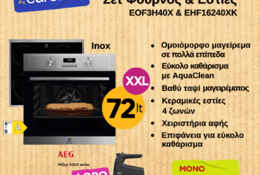 Δώρο μίξερ 500W! EOF3H40X Φούρνος Εντοιχιζόμενος. Φούρνος multifunction με κυκλική αντίσταση Πιεζόμενοι διακόπτες Ανοξείδωτο με Anti fingeprint επίστρωση Ανεμι